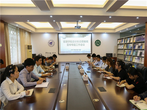 5月15日中午,为进一步做好管理学院意识形态与新闻宣传工作,提高宣传工作的效果和质量,展示管理学院的良好形象,管理学院在7206会议室召开专题工作会议。管理学院党委副书记张瑞主持会议并发表讲话,团委副书记曾丽萍、各学生组织指导老师以及主要负责人与负责新闻宣传工作学生干部参加本次会议。