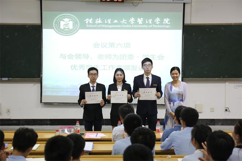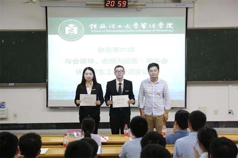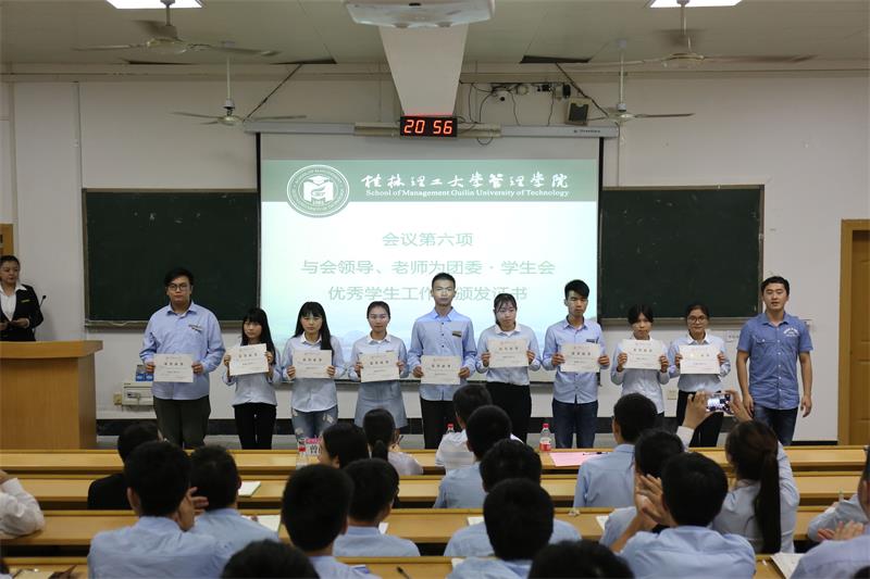 会上,首先由管理学院团委、学生会各部门部长以及书记处、主席团代表对本学年工作进行述职报告,他们在述职报告中回顾了组织部门及个人在过去的一个学期中开展的重点工作,系统地阐述了本部门工作的完成情况,同时对工作中的不足进行深刻剖析,并提出整改措施,并对下一步工作的开展畅谈了思路和计划。随后,管理学院团委副书记曾丽萍老师宣读表彰文件,共计表彰了来自团委、学生会的43名优秀学生工作者,与会老师及领导为获奖的学生干部颁发了荣誉证书。优秀学生干部代表表示会珍惜荣誉,戒骄戒躁,争取取得新的进步。