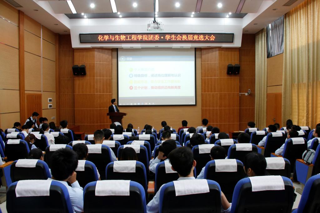 6月22日中午,化生学院于12栋报告厅举行团委、学生会主席团换届竞选大会。此次会议由团委副书记谭丽莉主持,学院党委副书记陶剑飞、团委书记饶筠筠,楼管委主任黄志钦、副主任黄菊,党建办公室副主任杨冰、侯慧出席本次大会并担任评审团,2017届团委、学生会全体成员参加了本次大会。
