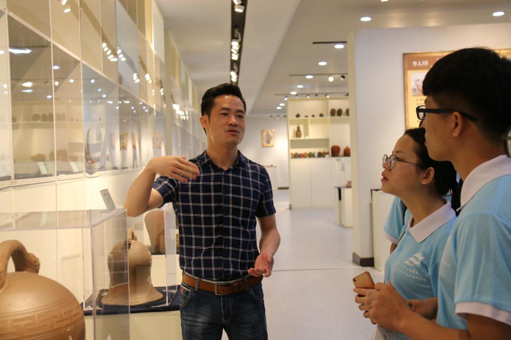实践团队的第一站来到了位于滨海大道钦州学院内的陶瓷与设计学院。钦州学院是较早开设坭兴陶相关专业课程的本科院校,配备有器材完备的高级实验室和教学中心,培养出了不少优秀的学生,许多学生作品在国内外陶艺赛事中都获得了不错的成绩。
