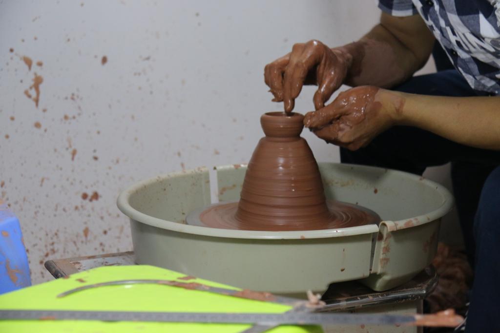 男生一边回答队员们提出的问题,一边游刃有余地用工具削去过厚的胎壁部分,动作无比熟练:“从大一开始我们就在为制陶打基础了,前期老师们会更注重培养我们的设计思维和创新意识,大一下学期开始我们就有机会进入实验室进行实际操作,等吃透了基础后我们就可以天马行空地创作了。”