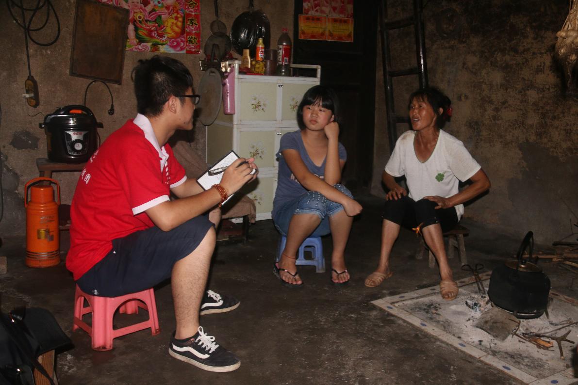 初到家中,晓渔的母亲热情地招待了我们的团队成员,并向我们讲述了家中的情况。通过了解,我们感受到,虽然家庭条件很艰苦,但晓渔一直坚持着自己的梦想,简陋的环境、昏黄的灯光、矮旧的房屋,丝毫没有动摇她心中那份坚持,国家的扶贫助学政策更为她的求学提供了极大的帮助。最后,扶贫团队确定晓渔为长期帮扶对象,并希望在将来能够为她提供力所能及的帮助,圆她一个大学梦。