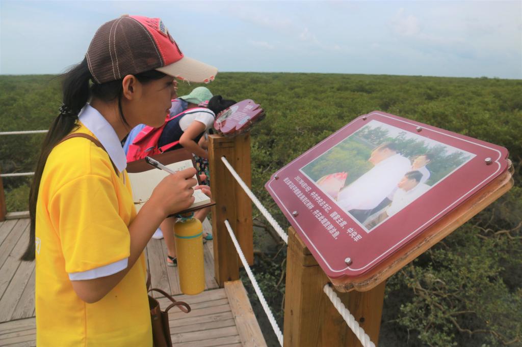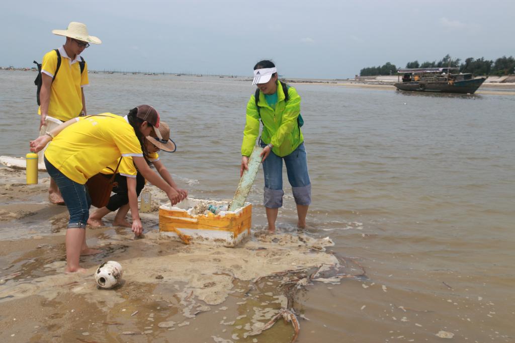 为了近距离观察认识有着海上“森林卫士”美称的红树林,7月10日,实践团走进北海金海湾红树林生态自然保护区。北海金海湾红树林约2000多亩,高低错落有致沿着海岸线生长,共有7种红树树种:白骨壤、桐花树、秋茄、海桑、卤蕨、木榄和红海榄,百种鸟类、昆虫、贝类、鱼、虾、蟹等生物在此繁衍栖息,是我国罕见的海洋生物多样性保护区。随着深入红树林中实践团成员发现红树林下散落着许多垃圾,原来是每逢涨潮时,海水带来了许多海洋垃圾,而保护区内的海滩上也随处可见白色泡沫箱和玻璃瓶等生活垃圾,与周围葱郁的红树林格格不入。园中工作人员表示每天都会进行清理,但垃圾仍然很多无法清除干净,如果来海边的游客能文明出行这将大大减少海洋垃圾。看到这种情况实践团成员们三三两两一组,争当“净滩小卫士”清理海滩边的垃圾。