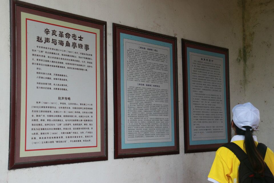 下午,实践团成员沿着这千年古郡的印记走到古海角亭。古海角亭是合浦廉政文化源远流长的一个凭证。亭中的碑文上记载着汉代合浦郡太守孟尝清正廉洁、为民服务的事迹,还有不同年代的人对这位太守的敬佩与爱戴之情。作为当代大学生,我们学习“廉政”精神,要立足于我们学生的身份,踏实学习,不断提高自身的思想素质和精神境界。