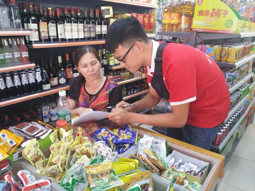 调研队员与零售商进行面对面的交谈了解零售商需求