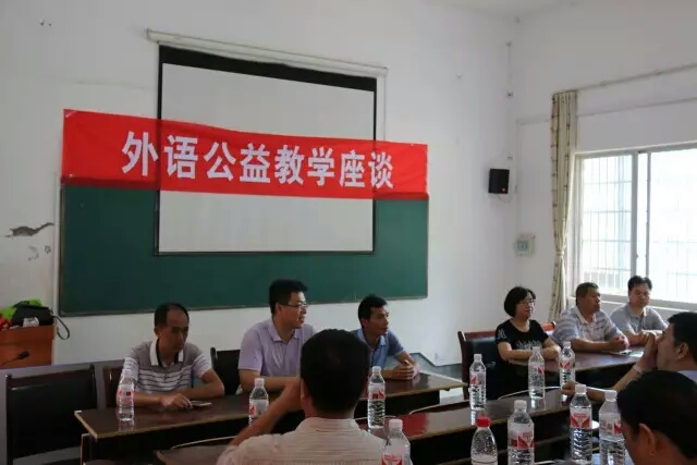 7月7日上午,外国语学院副院长陈湘柳、带队老师钟立军等15位老师和实践队成员先到朝板山中学对去年两校合作的公益外语教学项目组织回访,并召开了教师座谈会。孙志强等人代表双方教师对一年来“公益外语教学”项目的工作内容做了汇报,肯定了双方的教学成果,对今年的合作教学制订了指导性的意见。教师们分享了各自的教学经验和体会,就外语学习瓶颈的疏导、学生厌学和学习效率等问题进行了探讨,我院教师在结合自身的经验基础上给出了许多合理的方法和建议。