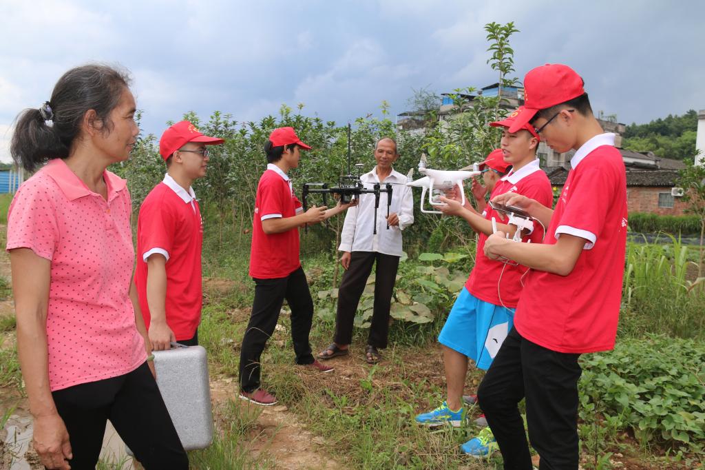 在互联网盛行的时代,利用互联网进行销售具有很好的收益。同学们深入农民家里,做先进科技的宣传者,让互联网与现代科技成果服务于农业产业发展。通过宣传互联网网上销售技术,让农户掌握新时代农产品销售技术;走向田间地头,向农民群众讲解现代农业知识,宣传现代科技成果——无人机,利用无人机,可以对农业产地进行探测,播种、喷洒肥料药水等。同学们希望村民们能尽快掌握农业先进技术,早日实现现代科技成果服务农业产业发展,早日脱贫致富。
