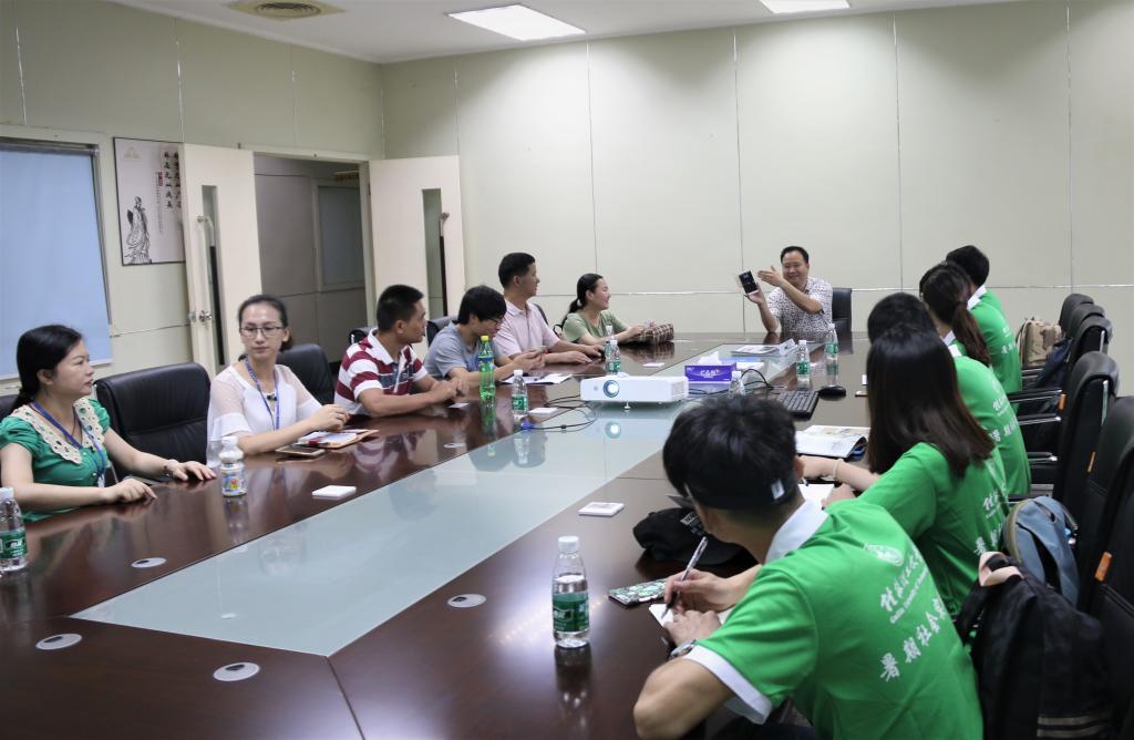 在东方亮彩集团,学院往届毕业生学长和实践团成员面对面进行交流学习,勉励学弟学妹们在大学期间要学好专业知识,打好基础,找准方向,提高自主学习能力,才能为适应“一带一路”的浪潮打下铺垫。