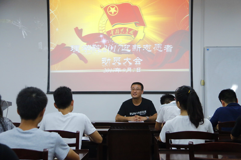 首先,单江涛老师宣读了《理学院迎新工作志愿者理办法》,接着他提出了工作要求,要求全体志愿者熟悉报到流程、办公地点和校园环境,不能以志愿者的身份向新生推销一切个人盈利性物品,要求全体志愿者要切实履行志愿者的职责,认真对待,做到礼貌、热情、周到,向广大新生展现我院良好的精神风貌。