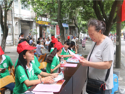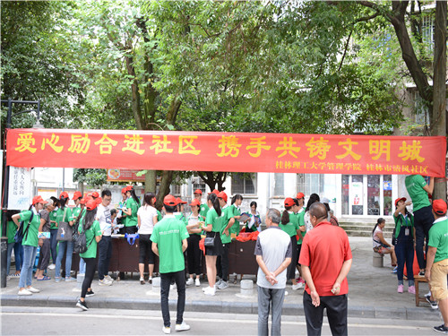 当天下午两点,参与“进社区送爱心”活动的55名志愿者在励合社指导老师李鑫的带领下,来到桂林市叠彩区清风社区进行44118太阳成城集团,向社区居民进行创文明城市的宣传。