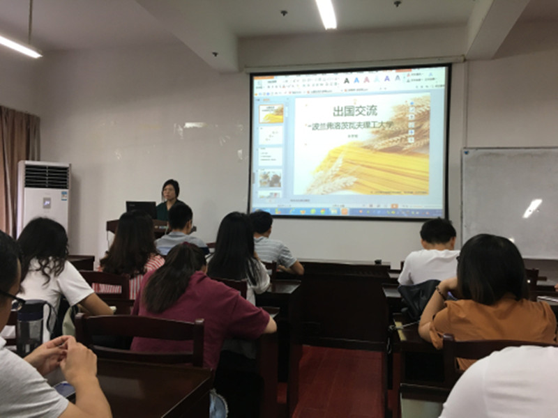9月21日下午,理学院研究生进行了一场短期出国访学交流会。2015级研究生孙梦瑶从出国前准备事项、国外的饮食起居相关事宜、波兰大学课程学习安排、波兰风土人情等几个方面做了精彩报告。孙梦瑶表示这次短期出国访学让她受益匪浅机会难得。
