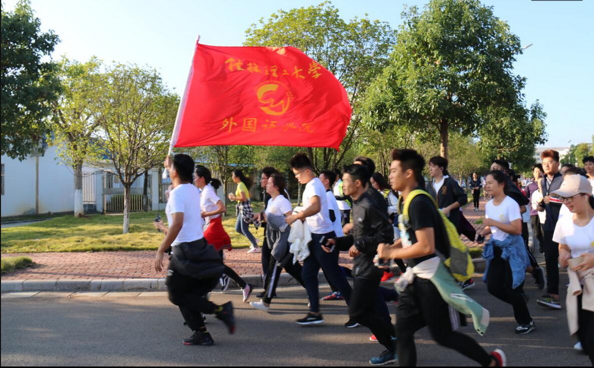 为响应团中央学校部、全国学联秘书处联合举办的以“厉害了我的国”为主题开展的“2017全国大学生校园跑步季”活动号召。10月14日上午7点,外国语学院开展校园跑步活动。此次活动由外国语学院团委主办,同学们积极报名参与活动。