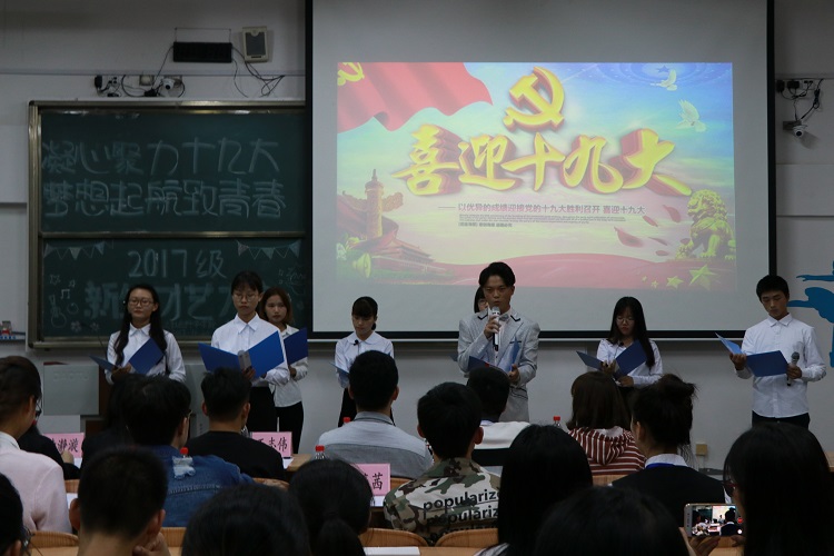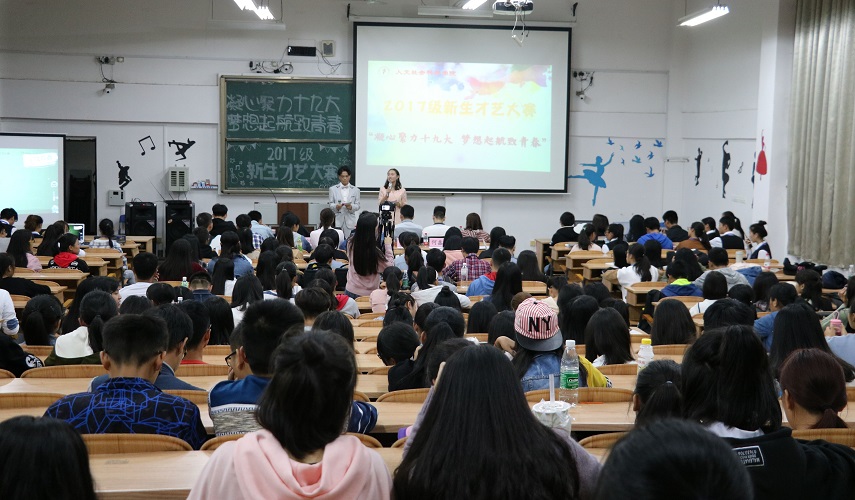 2017年10月18日,党的十九大胜利召开。为了同学们能走进十九大,同时丰富自己的课余生活,我院于10月20日在雁山校区06509教室举办了“凝心聚力十九大,梦想启航致青春” 2017级新生才艺大赛。辅导员王志伟、时香丽老师,学生会主席团成员以及院艺术团负责人作为大赛评委出席并观看了整场比赛。