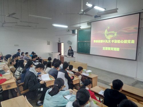 为庆祝党的十九大胜利召开, 10月18日下午,信息学院组织团学干部在07319教室学习十九大报告。会议由信息学院团委书记陈俊乐老师主持。