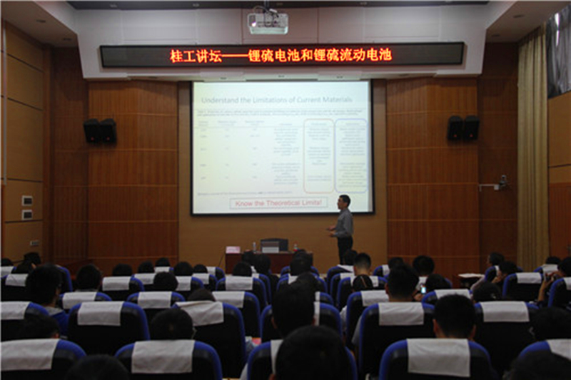 LEE教授从纯电动汽车如特斯拉、比亚迪的电池构造与性能出发,介绍了电池领域的发展现状、存在的问题、研究热点、应用前景等。重点介绍了锂离子、钠离子、锂硫、锂硫流动、锂空等各类电池的工作原理、性能优劣、制作工艺、技术瓶颈等。报告中,LEE教授也介绍了自己所带领的科研团队在锂电池领域做的部分研究工作。LEE教授与在场师生进行了交流,现场气氛活跃。