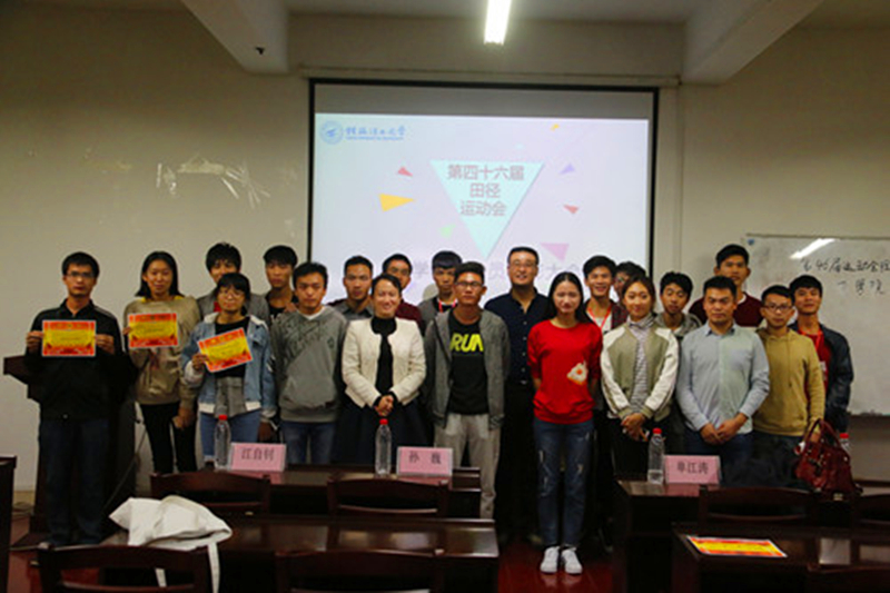 为了发扬和践行勇于拼搏、奋勇争先的体育精神,表彰在学校第四十六届运动会中涌现出的先进集体和个人,理学院于11月8日21:40在雁山校区07122会议室举行了第四十六届校运会表彰总结大会。理学院党委副书记孙巍老师、团委书记兼学工组组长单江涛老师、2017级辅导员李鹏宇老师、全体参赛运动员和各班级代表参加了本次大会。