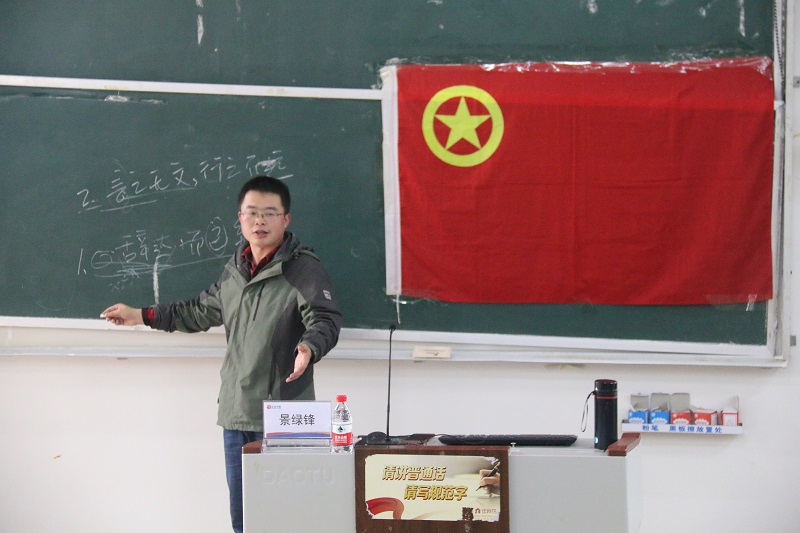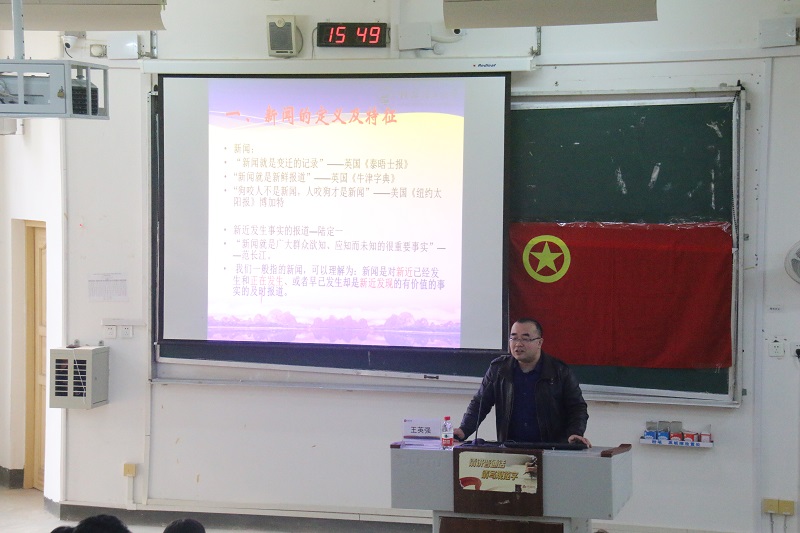 首先,景绿锋老师以读书一话题为同学们引出了此次培训的主题主旨,并通过列举不同例子,鼓励同学们在生活中发现美和新闻,热爱拍照,热爱写作。随后,王英强老师为现场同学进行了校园新闻稿写作培训:他先分析了新闻定义及特性,强调了新闻的时效性和真实性;而后详细介绍了新闻六大要素、新闻的分类与新闻写作的基本要求等,希望同学们提升对新闻的敏感度,并指出了新闻写作中的一些禁忌和同学们撰写新闻稿时易犯的错误。接着,王老师结合自身丰富的摄影经验,通过展示前期精心准备的照片为现场同学介绍了拍照的方法与技巧,给予现场同学许多太阳集团城网站2017照片美感的建议。最后,王、景二位老师与台下同学进行了热烈的交流互动,其专业的回答获了现场同学的阵阵掌声。