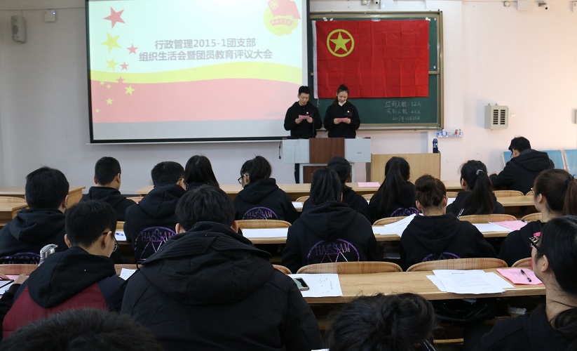 12月25日上午9点,公共管理与传媒学院行政管理15-1团支部在06409教室开展“践行新思想,拥抱新时代”组织生活会暨团员年度教育评议大会。学院辅导员陈琳老师、王志伟老师以及其他团干参加了观摩。
