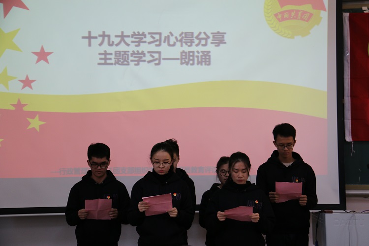 会上,同学们首先进行了十九大精神的学习,梁孙宾同志作为代表分享了自己的感受,各小组以朗诵的形式表达了对“十九大”的所感所想;团支部每个成员结合工作学习生活实际,分享学习党的十九大精神的心得体会并对个人进行自我总结;接着,围绕学习情况、发言情况和日常表现情况对团员进行评议。确定了王妍妍等10名团委评议优秀,梁琅等22名团员为合格。