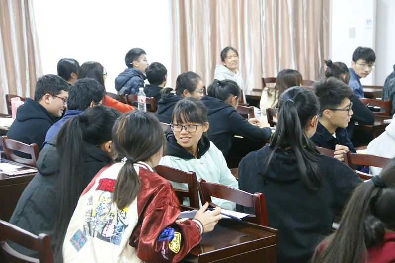 为了学习贯彻落实党的十九大精神,进一步增强“四个意识”、坚定“四个自信”,进一步明确团内工作任务,不忘初心、牢记使命。12月26日16:15理学院于雁山校区07122会议室开展了以“践行新思想,拥抱新时代”为主题的示范性团组织生活会。学校团委书记周国桥老师、理学院团委书记单江涛老师、17级辅导员李鹏宇老师、各班班长团支书代表参与了本次团组织生活会,本次活动由统计17-4团支部承办。
