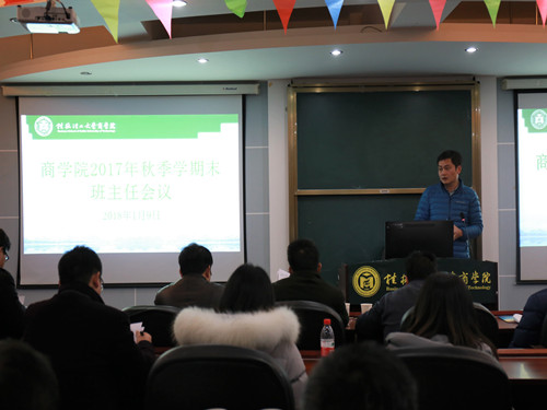 会上,张瑞副书记首先向学院全体班主任对于商学院学生工作开展的辛苦付出表示由衷的感谢。随后,他着重对春节放假之前的学生安全工作做了相应的安排和部署,并要求班主任从学生假期安全、交通安全、学生思想情绪、学生日常行为规范等多个方面对班级学生进行教育、引导和监督,同各年级辅导员通力合作,共同做好本学期收尾工作。