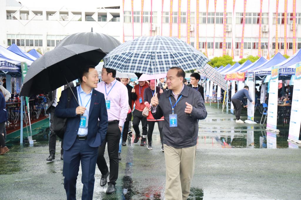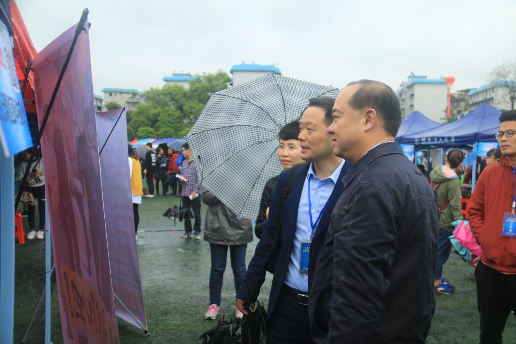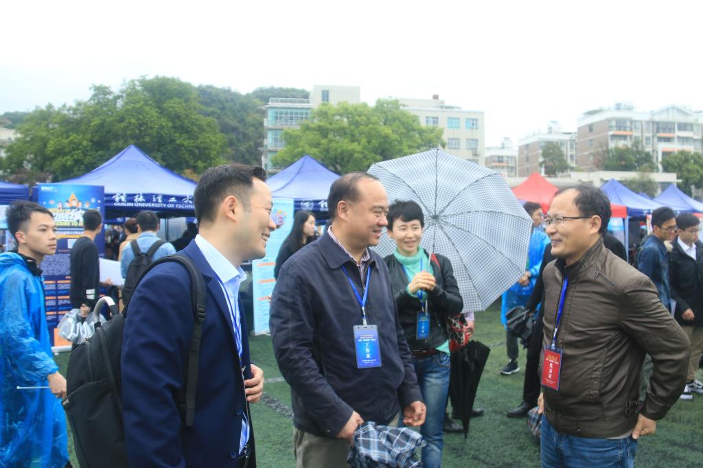 3月17日,2018届广西高校毕业生双选会暨太阳集团城网站2017春季双选会在太阳集团城网站2017屏风校区运动场隆重举行。商学院党委书记周章明、院长连漪、副院长蒙永亨、副院长李超玲、学工组长沈菲菲、院行政办主任李业正以及各年级辅导员冒雨亲临本次双选会现场,与用人单位招聘代表亲切沟通交流,了解用人单位对人才的需求情况以及当前就业形势。与此同时,商学院领导还与2018届毕业生亲切交谈,悉心询问其就业意向、就业情况,并为其提供就业指导意见。