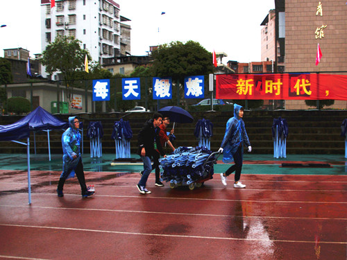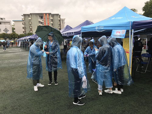 风雨中的志愿者们