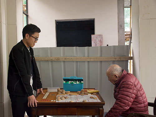 志愿者陪老人下棋