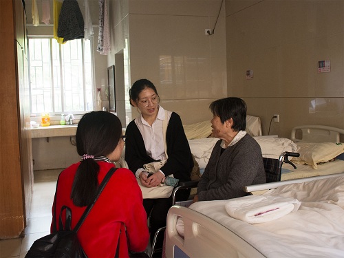 志愿者与奶奶亲切交谈