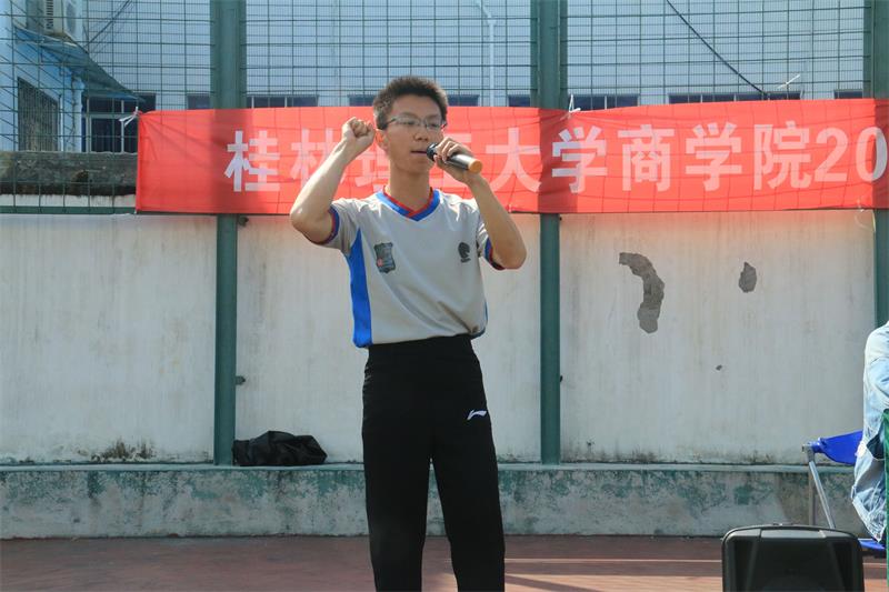 裁判协会负责人韦明梁代表裁判进行庄严宣誓,他表示本次赛事将遵循着公平、公正、公开的原则,竭力为运动员们创造一个公平、良好的比赛环境。接着,商学院篮球队队长张潆钰代表参赛运动员们进行宣誓。他倡议,运动员应本着“友谊第一,比赛第二”的态度去认真对待每一次比赛。