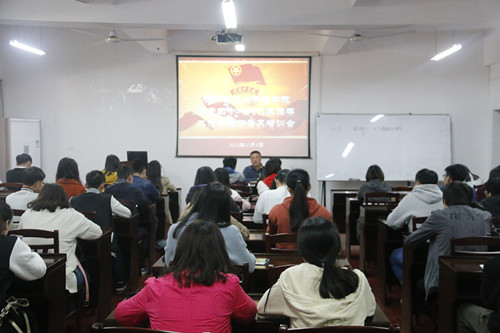 2018年4月8日12:10,理学院于雁山校区07122会议室召开共青团十八大代表推荐工作专题部署及培训会。理学院团委学生会主席团、团委全体成员、本科生和研究生各团支部团支书参加了会议,会议由理学院团委书记单江涛老师主持。