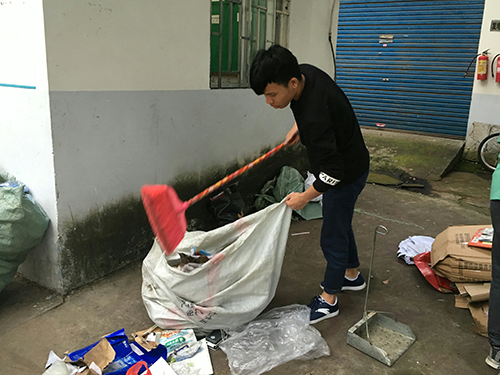 每一次绿色回收活动都有不同的志愿者参与,从小组集合点名到一起进宿舍进行回收工作,再到最后的集中分类堆放,活动在有条不紊的进行中。大家默契配合,将下宿舍回收到的各类废品收集到指定地点,并进行了重新分类装袋、集中堆放。最后,志愿者们认真打扫场地,把分类过程中留下的垃圾清理干净才离开宿舍楼。
