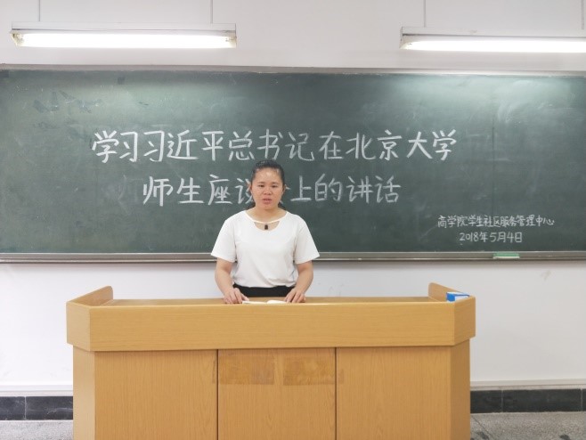 为学习习近平总书记在北大师生座谈会重要讲话精神,加强学生干部思想建设,鼓励大家做有理想有担当的青年大学生。商学院社管中心于5月4日在雁山校区04526召开了专题学习会。本次会议由社管中心主任罗珊主持,社管中心全体成员参加了本次学习会。
