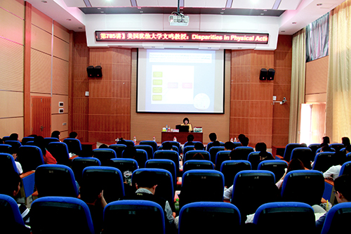 文鸣教授现为美国犹他大学社会学教授,系主任,美国健康部评审专家,也是健康、移民、儿童发展和老龄化方面的社会学家。本次讲座,文鸣教授主要演讲了多年来致力于研究社会、社会环境、美国居民体育活动和肥胖的关联等相关研究问题。讲座上,文教授通过数据分析、数据例举、数据对比深入探究造成美国体育活动与肥胖的差异,同时也对国内、欧洲人群肥胖的原因及趋势做了分析。讲座最后,进行了现场对话问答。在场的教师及学生提出听了讲座过后的疑问,文鸣教授对所提出的问题一一回答。