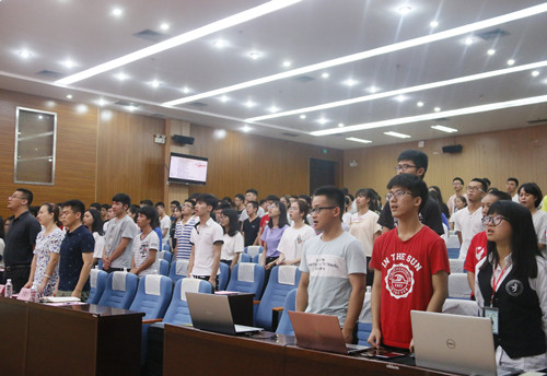 为进一步贯彻落实党的十九大精神,响应共青团中央“大学习”活动。5月27日,理学院于雁山校区图书馆报告厅开展以“四进四信中国梦,青春五四爱国情”为主题的示范性团日活动。理学院党委副书记孙巍、团委书记兼学工组组长单江涛、17级辅导员李鹏宇、学院团委学生会主席团、校团委代表、各学院组织部代表出席了本次活动,学院各团支部代表参加了此次活动。本次示范性团日活动由应用统计学17-4团支部承办。
