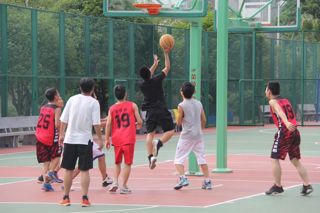 为进一步增进理学院本科和研究生毕业生与老师之间情感友谊的沟通与交流,展现理学院师生健康、和谐、积极进取的精神风貌,丰富师生的课余文化生活,6月5日15:00,理学院在一号组团篮球场举办了理学院师生篮球友谊赛。