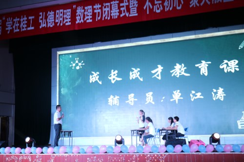 理学院一年一度的校园文化盛宴——数理节闭幕式暨毕业生晚会于2018年6月2日19:30在雁山校区体育馆隆重举行。校工会常务副主席辛立章、理学院党委书记陆平、理学院院长肖剑荣、校团委副书记潘思伊、理学院副院长唐国强、张富文、蒋远营,理学院党委副书记孙巍、学工处学生管理科科长罗义淞、院长助理李明、物理教研室主任夏雄平、物理实验室主任马家峰出席晚会现场,各学院辅导员代表、理学院全体辅导员、各班班主任、部分教研室老师与理学院全体本科生和研究生参加了本次晚会。