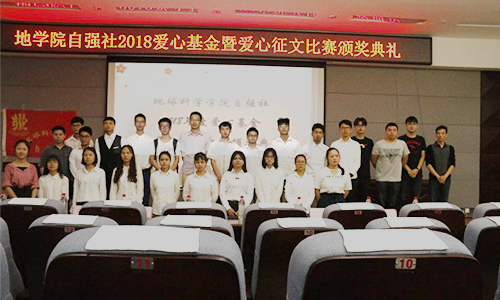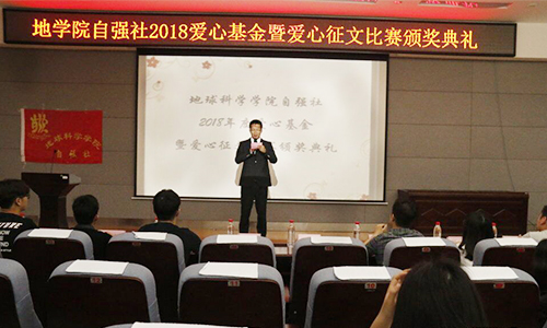 为鼓励与支持品学兼优的学子,发扬自强自立的精神,2018年6月3日上午,太阳集团城网站2017自强社在雁山校区逸夫楼01501报告厅举办爱心基金与爱心征文比赛颁奖典礼。出席本次典礼的有自强社理事长谷正杰老师和学院各社团代表。