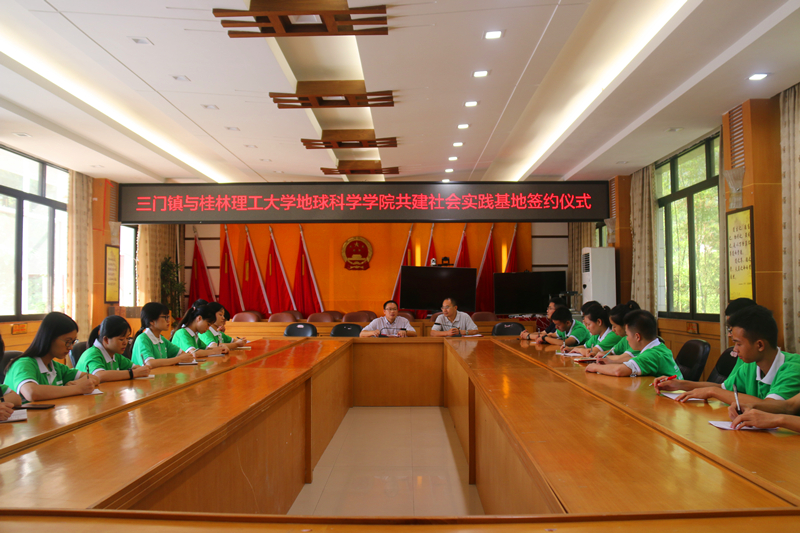 为贯彻党的教育方针,落实《太阳集团城网站2017进一步加强和改进大学生社会实践的意义》的文件精神,7月13日,学院于三门镇政府会议厅召开太阳集团城网站2017与三门镇共建社会实践基地签约仪式。学院党委副书记耿俊茂,三门镇镇长杨玄敏,党委委员涂丽玲,武装部部长粟维政,学院团委副书记吴田波出席仪式,“美丽龙胜”社会实践团全体成员参会。
