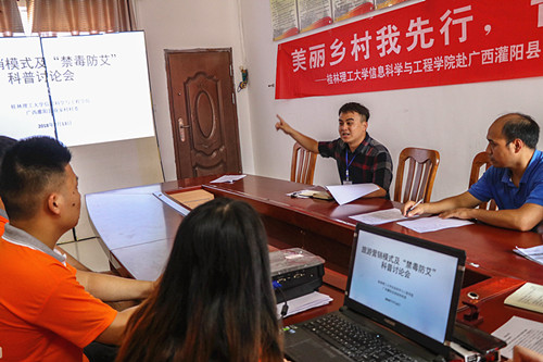 为了提高禁毒防艾宣传的影响力,以及让更多人切实了解到毒品及艾滋病的危害,增加自我防范能力,2018年7月14日,我院社会实践团在指导老师孟德、乐惠泽的带领下走进桂林市灌阳县黄关镇商家村开展禁毒防艾宣传工作。