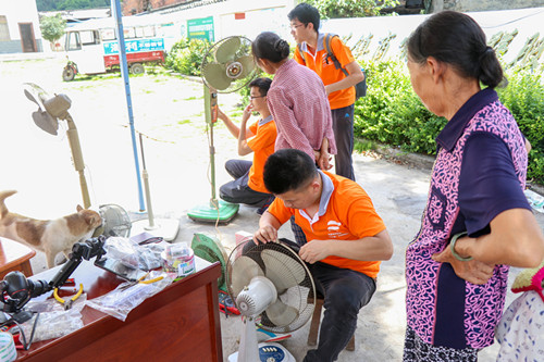 为了更好地发挥社会实践团队员们的专业特长,2018年7月14日,实践团在黄关镇商家村党群服务中心开展了义务维修活动。