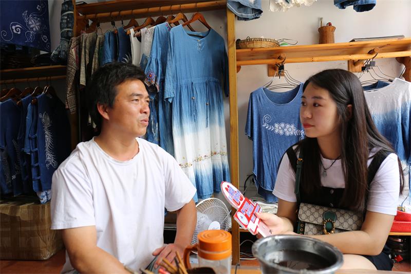 团队成员对蜡染坊主梁清先生进行采访