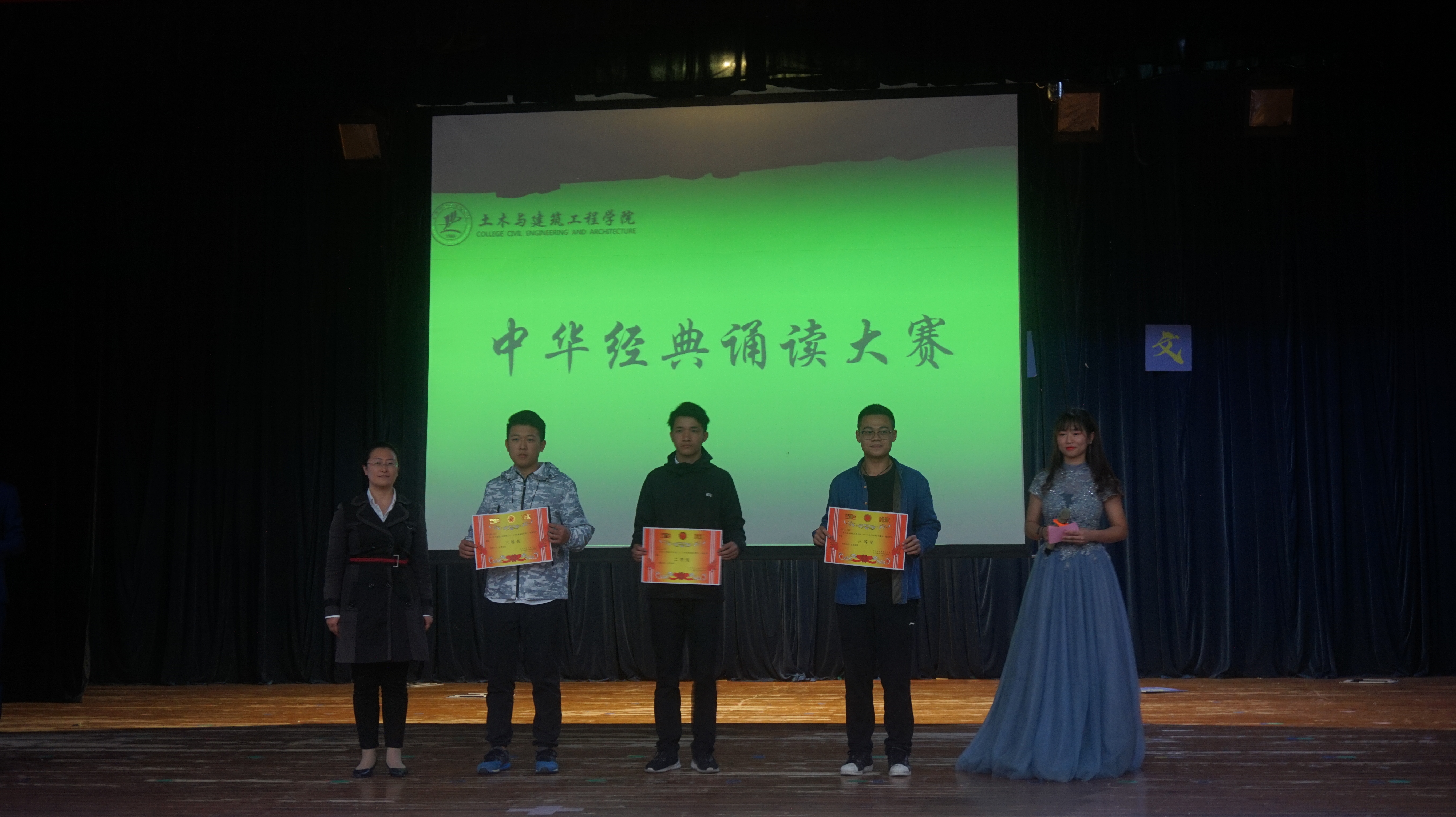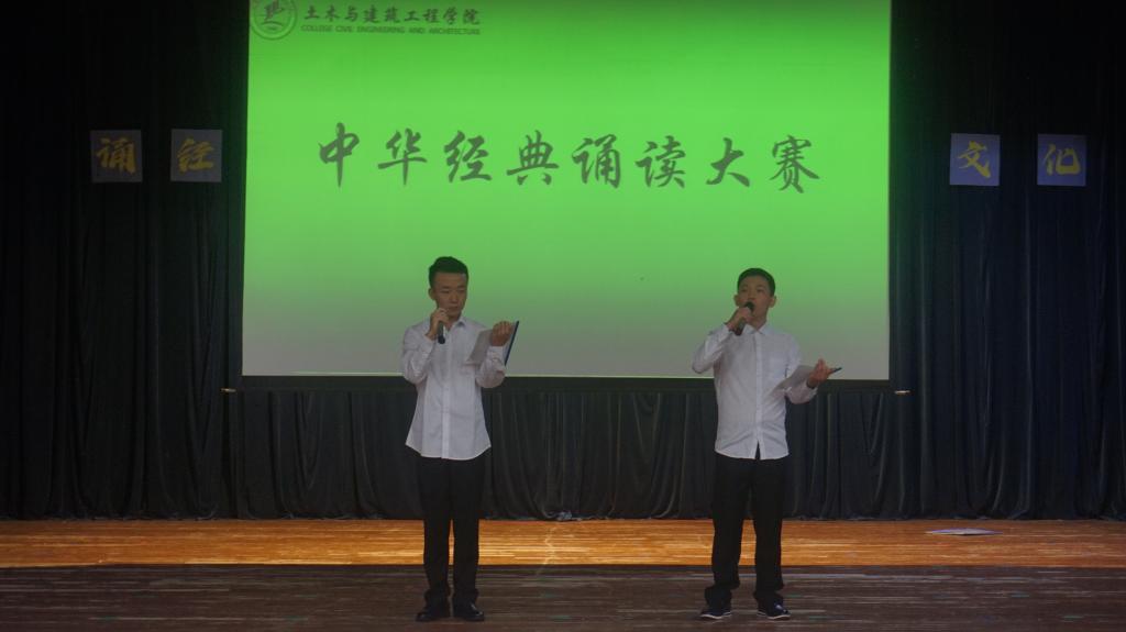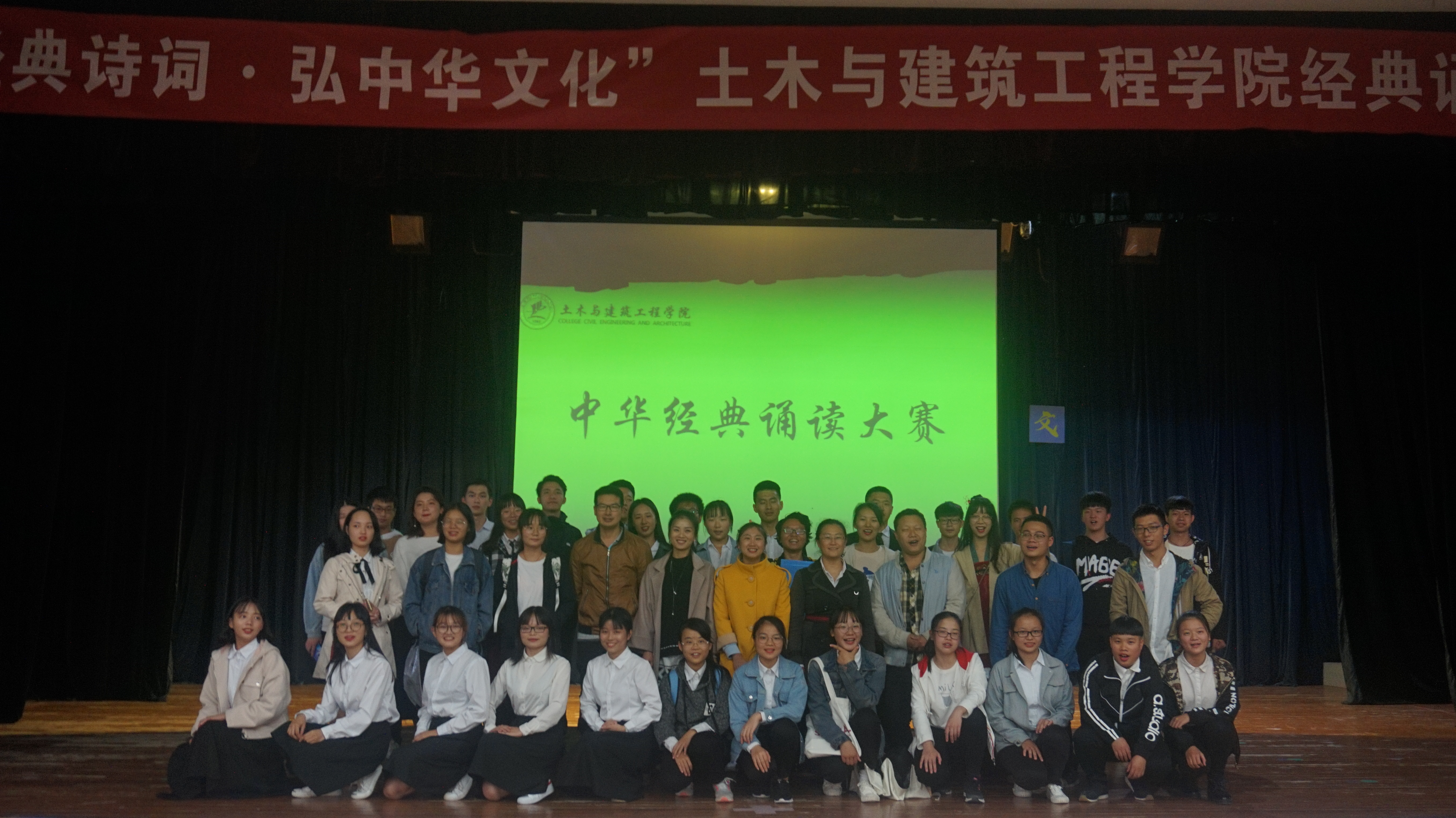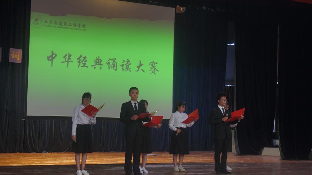 为传承和弘扬优秀传统文化,丰富校园文化生活,并为参加校级中华经典诵读比赛选拔优秀人才,土木与建筑工程学院于10月13日下午在屏风校区南礼堂举行“诵经典诗词 弘中华文化”经典诵读大赛。校团委校园文化部易姗姗老师,学院团委书记姚慧老师、学工组组长宋明霞老师、组织员石习杰老师及17级辅导员马文硕老师莅临现场并担任评委,材料学院文艺部部长胡超俊、商学院主持人队16级队长何蒙作为嘉宾参加此次活动并担任评委,现场共计200多人观看了此次比赛。