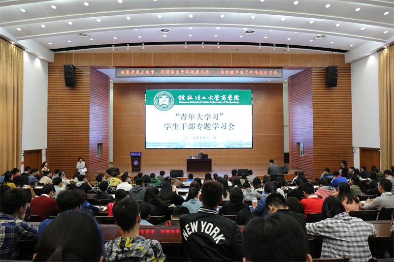 10月13日上午,商学院团委在屏风校区图书馆报告厅开展“青年大学习”专题学习会,旨在针对近期一些高校学生干部中出现的官僚化、功利化、庸俗化等问题,教育引导商学院青年学生端正学习态度,改进工作作风,商学院党委书记周章明受邀为全院学生干部开展题为“凝聚青春正能量,引领学生干部健康成长”的专题报告会。商学院党委副书记沈菲菲老师、各学生组织指导老师以及各学生组织学生干部200余人参加了学习会,学习会由沈菲菲老师主持。