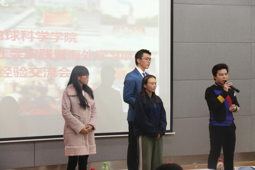 交流会伊始,主持人首先播放学院暑假社会实践及海外学习项目的视频,接着由资勘17实验班芦思洁同学代表“看世界”项目——哥斯达黎加阿玛特经贸大学双一流学科研修团队分享学习心得,她讲解了不同地域的人文文化;随后,“看中国”青春武汉行实践团代表卢琪愿、“看中国”一带一路侨梦团队代表周其琪、“看广西”美丽龙胜实践团代表尹城烨、“看广西”返乡宣传实践团代表梁静敏分别分享实践心得,他们展示了暑假社会实践的成果与收获。学习心得分享结束后,交流会进入自由提问环节,18级全体学生踊跃参与。