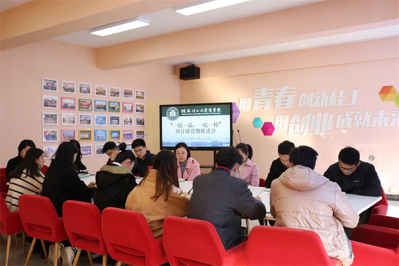 为进一步推动“商学期”品牌活动的发展,2018年11月23日下午,商学院特召开“一院一品,一院一特”项目建设工作推进会,商学院党委副书记沈菲菲、学工组长曾丽萍、各年级辅导员及商学院团委、学生会主要学生干部参加本次推进会。