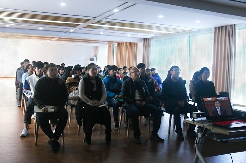 12月18日,艺术学院团委、学生会组织了学院学生干部代表100多人于博雅楼101室集中收看了“庆祝改革开放40周年大会”直播报道,学院党委副书记苑守瑞及辅导员们出席一同观看。