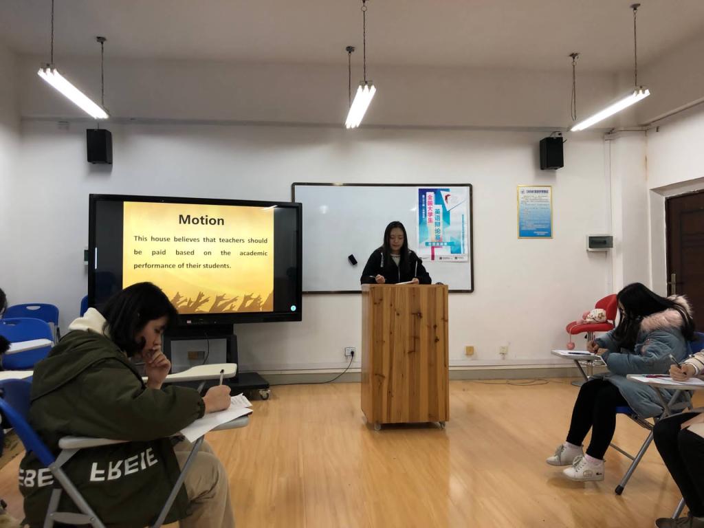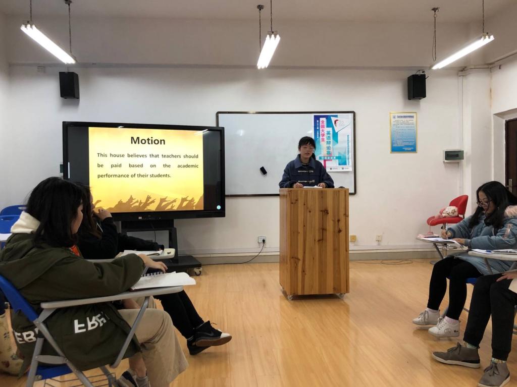 辩论赛正式开始,选手们迅速进入状态,依次上台针对辩题展开论证。参赛选手们各显风采,沉着冷静,用流利的英语口语阐述自己的观点。在辩论赛中,选手们充分展示了自身扎实的英语功底和敏捷的逻辑思维。在本次辩论赛的最后,由邢芸老师对辩手们的表现进行点评,最终选出4支参赛队伍进入决赛。