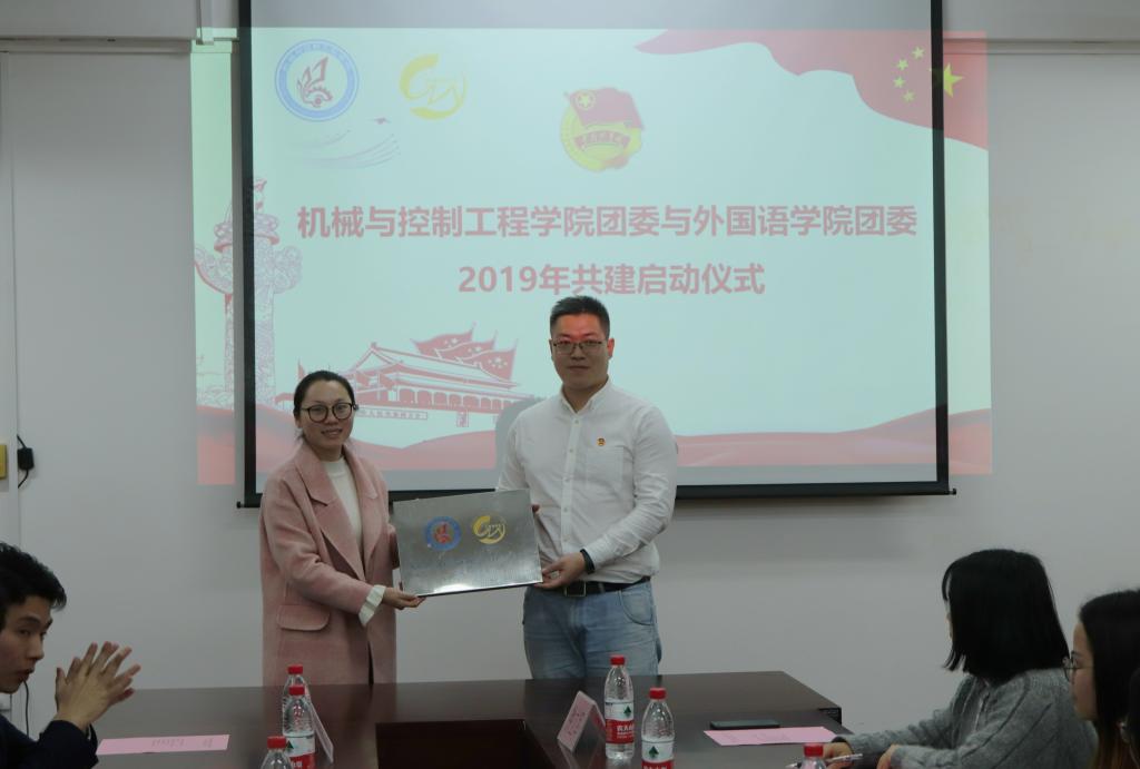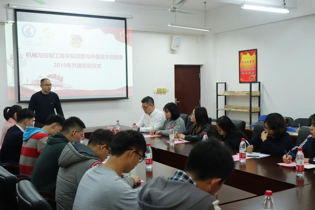 2019年3月13号中午,太阳集团城网站2017机械与控制工程学院团委与外国语学院团委2019年学院合作共建启动仪式在07215隆重举行。机械与控制工程学院党委副书记耿俊茂、外国语学院团委书记钟立军、机械与控制工程学院团委书记刘颖洁以及两院团委、学生会,团支书、团员代表出席本次启动仪式。