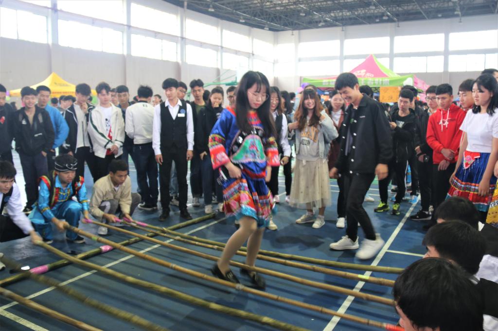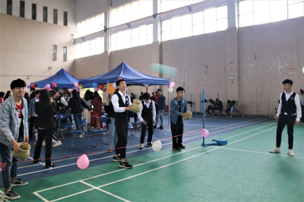 本次活动主题为“真情致两会,情动三月三”,以壮族三月三传统活动与两会知识竞赛相结合的趣味运动会形式举办,活动以节目和游戏两种方式依次进行。此次活动的节目表演精彩纷呈,营造了热闹的活动氛围,外国语学院艺术团和机械与控制工程学院消防车乐队合作给大家带来了美妙动听的歌曲,两院学生合作带来铿锵有力的朗诵《我的祖国》。紧接着,由机械与控制工程学院党委副书记耿俊茂致开场词,预祝本次活动圆满举行,并宣布活动正式开始。在游戏环节中,会场内设置有6个趣味游戏点,分别是抛绣球、抢椅子、拼图、夹绣球加击鼓、“两会”大富翁、记词游戏,同时还进行了多人共跳竹竿舞、抛绣球、吃糯米饭等壮乡特色风俗活动。在活动期间,领导嘉宾们参观各个趣味游戏点,并亲身体验游戏,与同学们一起参与到游戏当中,现场气氛十分活跃。
